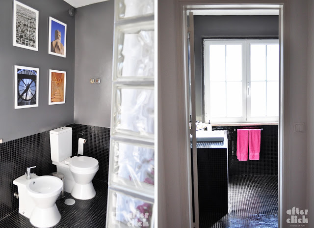A casa de banho era branca. Como estava sempre caótica decidi pintar de antracite. Confesso que antes de tocar com o rolo na parede pensei: “Onde é que te vais meter?” Mas adoro, adoro! Perdeu alguma luz mas a janela é enorme e não é gravíssimo. E, melhor de tudo: se voltar a aparecer alguma húmidade fica logo disfarçada e não tenho muita pressa para a voltar a pintar.